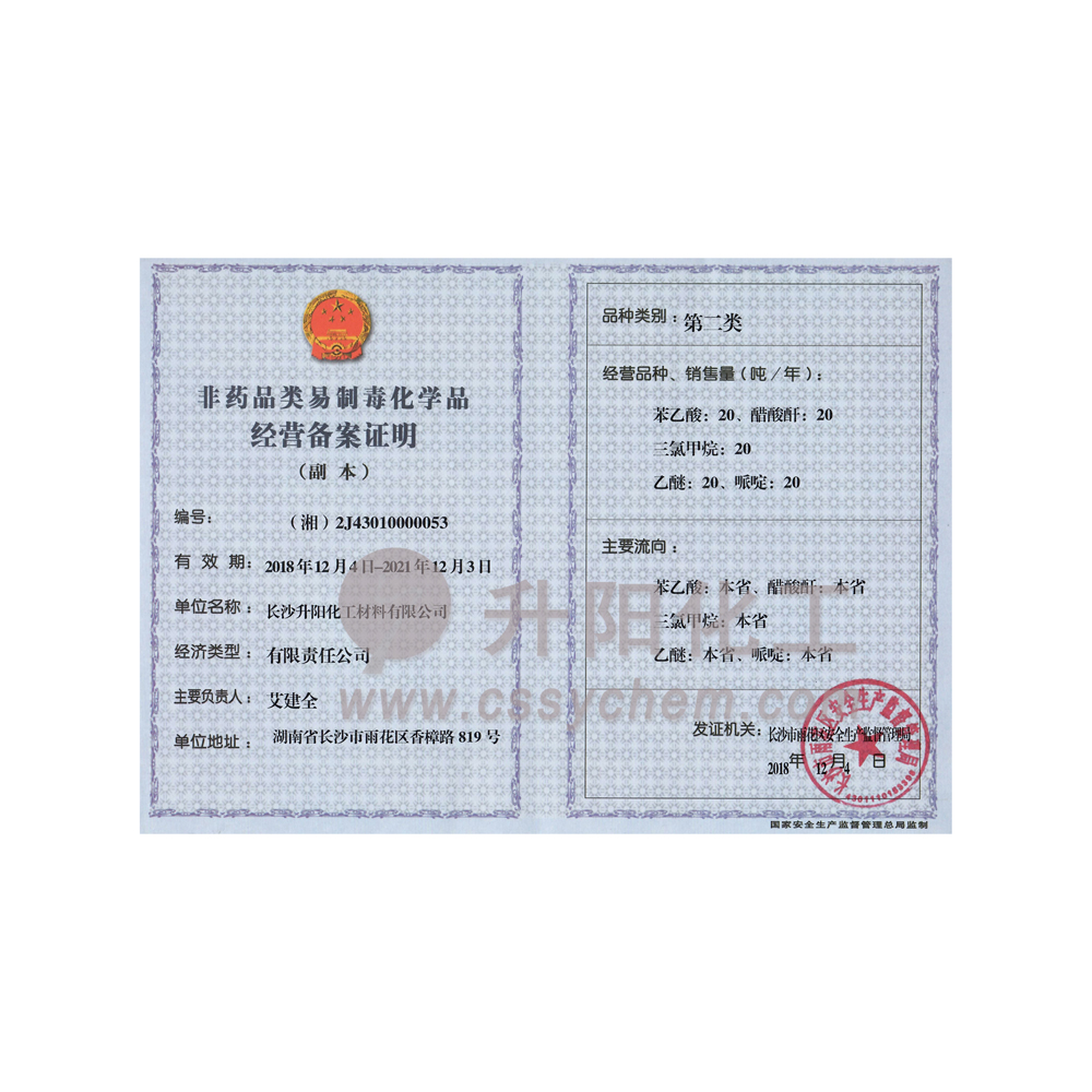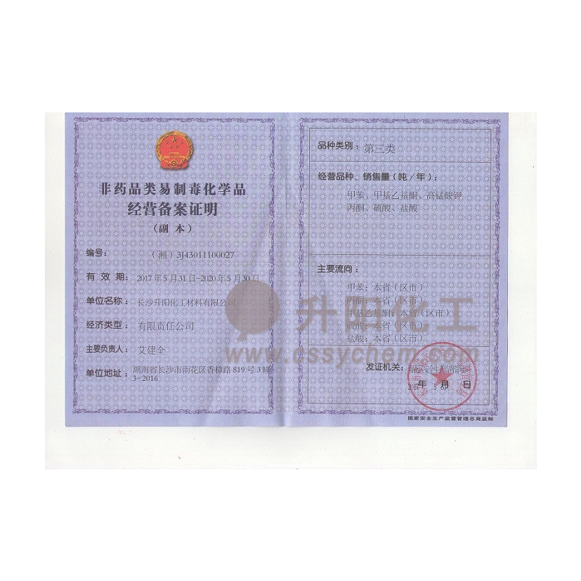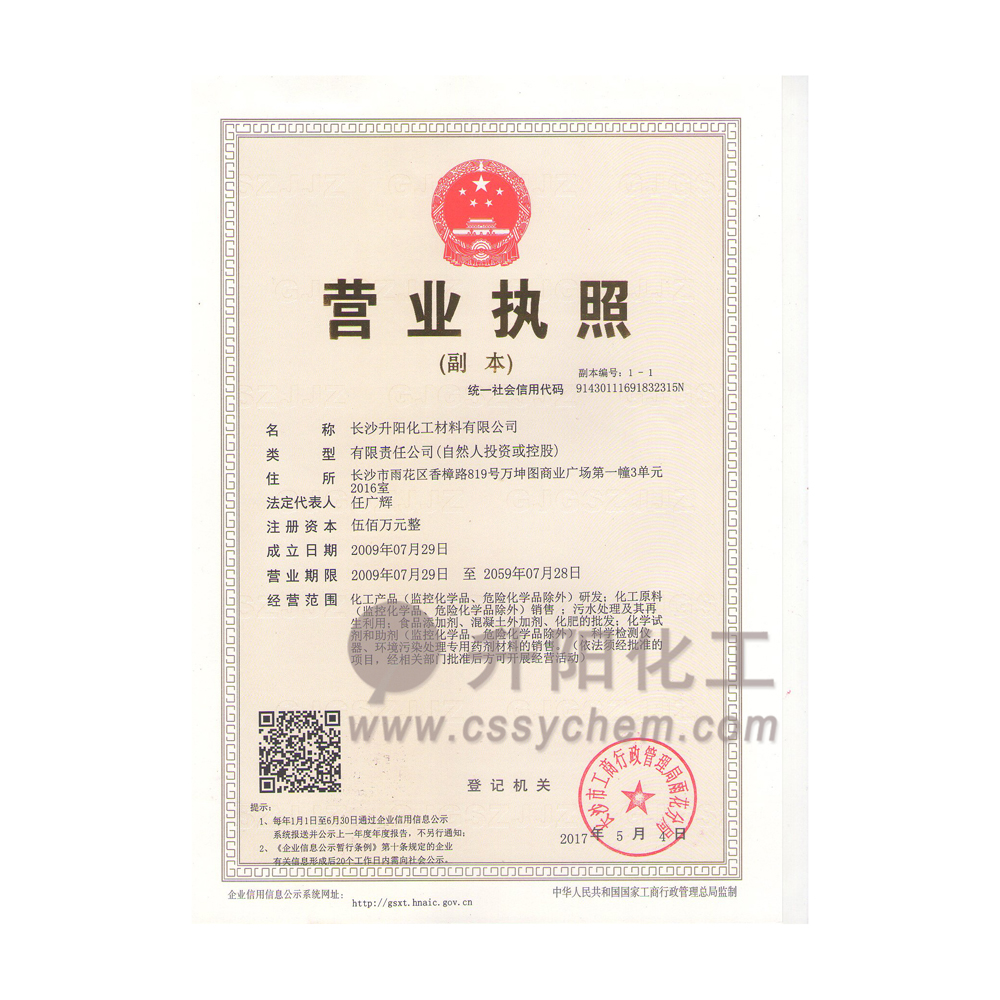 長(zhǎng)沙升陽化工材料有限公司成立于2009年,是一家已經(jīng)擁有10年化工原料經(jīng)營(yíng)歷史的企業(yè)。我們本著“服務(wù)至上,以誠(chéng)為本”的原則,為廣大的新老客戶提供最優(yōu)質(zhì)的產(chǎn)品、最便捷的服務(wù)。歷經(jīng)10多年的積淀與發(fā)展,現(xiàn)已成長(zhǎng)為湖南省頗具規(guī)模的專業(yè)化學(xué)品服務(wù)供應(yīng)商之一。?公司集貿(mào)易,科研,倉儲(chǔ),物流為
